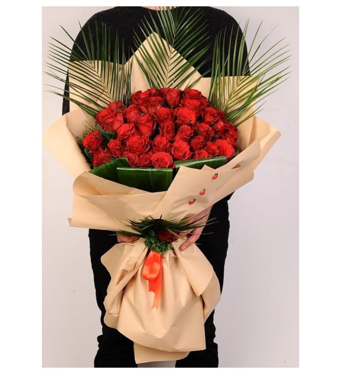 ürün boyu yaklaşık 60 cm 41 adet kırmızı gül ile hazırlanmıştır