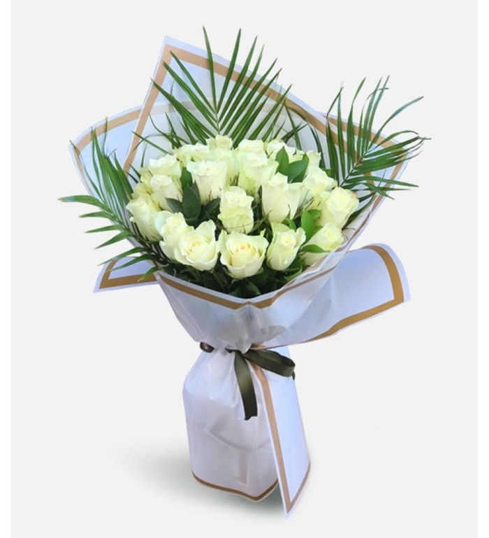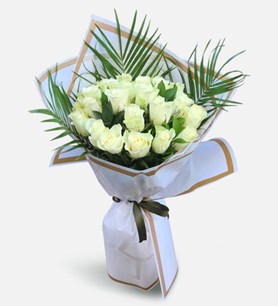 Ürün Yüksekliği: 40-50 cm Ürün İsmi: Beyaz Buket Kağıdında 20'li Beyaz Gül Buketi Gözlerinizi kapattığınızda hayallerinizi süsleyen, masum gülüşüyle hayatınızı bir anda cennete çeviren kişiye, en az onun kadar masum bir hediye: Beyaz Buket Kağıdında 20'li Beyaz Gül Buketi! Kenarı beyaz çizgili beyaz buket kağıdı içerisinde okaliptus ile sunulan 20 adet beyaz gül sayesinde, en güzel dileklerinizi ve içten duygularınızı anlatabilir, sevdiklerinizin gününü bir anda güzelleştirebilirsiniz. Her detayı özenle hazırlanan Beyaz Buket Kağıdında 20'li Beyaz Gül Buketi’ni; Sevgililer Günü, Anneler Günü, doğum günü, yıl dönümü gibi özel günleri taçlandırmak ya da sıradan bir günü unutulmaz kılmak için tercih edebilirsiniz. Siparişiniz sonrasında çıkacak “Not oluşturma” sayfasında birkaç cümlelik not oluşturarak, hediyenizi daha anlamlı bir hale getirmeyi unutmayın! Kesme çiçekler için bakım önerisi: Kesme çiçeklerin bakımı oldukça kolaydır. Bitki size ulaştıktan bir süre sonra vazo içerisine temiz su koyarak bitkileri suya yerleştirmeniz yeterlidir. İki günde bir bitkinin suyunu değiştirirken, bitkilerin saplarının ucundan verevine keserek sapların çürüyen kısımlarını temizleyebilirsiniz. Not: Çiçek aranjmanı içerisinde yer alan çiçekler stok durumuna göre farklı renklerde ve boyutlarda olabilir. Ayrıca bazı çiçekler, mevsimsel şartlar sebebiyle çiçek açmamış halde, kapalı olarak gönderilebilir. Kapalı haldeki çiçekler 1-2 gün içerisinde, oda sıcaklığında açacaktır.
