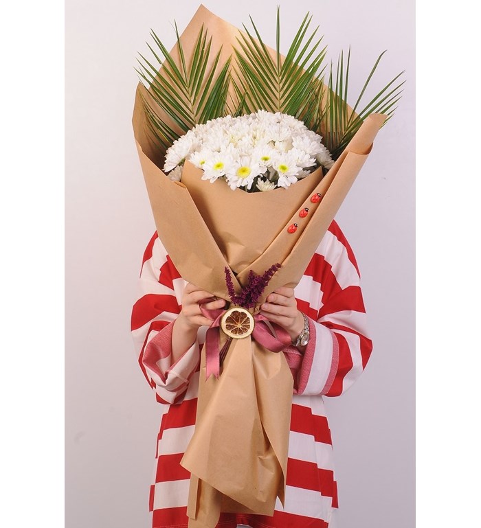 beyaz papatyalar ile hazırlanmıştır ürün boyu yaklaşık 50 cm