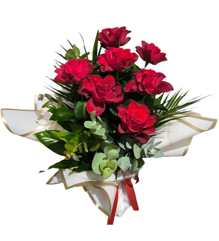 Ürün Yüksekliği: 40-50 cm Ürün İsmi: Beyaz Buket Kağıdında 7 Kırmızı Gül Baştan aşağıya kırmızı, baştan aşağıya aşk kokan bir aranjman… İşte karşınızda Beyaz Buket Kağıdında 7 Kırmızı Gül… Kırmızı güller, aşkın ve tutkunun sembolü olarak tüm dikkatleri üzerine çekiyor. Bu nedenle bu buket, romantik bir jest yapmak isteyenler için en özel kurtarıcı oluyor. Okaliptus ile birleşen, rafya ve kırmızı kurdele ile süslenen kırmızı güller, şimdi en özel kişiye hediye edilmeyi bekliyor! Aranjmanda yer alan 7 adet gül; “Sana aşığım!” anlamına geliyor. Siz de aşık olduğunuz kişiye bu aranjmanı hediye ederek ona duygularınızı açabilirsiniz. Hayatınızın en özel anlarını birlikte geçirmek istediğiniz sevdiğinize bu özel aranjman sayesinde unutulması zor bir sürpriz yapabilirsiniz. Bu özel aranjmanı, sıradan bir günü özelleştirmek veya Anneler Günü, doğum günü, Sevgililer Günü gibi özel günleri unutulmaz kılmak adına sipariş edebilirsiniz. Siparişiniz sonrasında çıkacak “Not oluşturma” sayfasında birkaç cümlelik not oluşturarak hediyenizi daha anlamlı bir hale getirmeyi unutmayın. Gönderim Amaçları; Kadınlar Günü Sevgililer Günü Anneye Doğum Günü Geçmiş Olsun İçimden Geldi Sevgiliye/Eşe Tebrik Teşekkür Ederim Yıl Dönümü Özür Dilerim Bakım Önerisi:Çiçek buketinizi/vazonuzu eve getirdiğinizde, ambalajını açıp varsa iplerini çözün. Çiçeklerin daha fazla su çekebilmesi için alt yaprakları temizleyin ve saplarını 2-3 cm kadar, suyun altında tutarak kesin. Çiçekleri yerleştireceğiniz vazoyu iyice temizleyin ve vazoya oda sıcaklığında su doldurun; su seviyesini sapların yarısına kadar gelecek şekilde ayarlamaya dikkat edin. Vazonuza bir paket çiçek besini eklemeyi unutmayın. Çiçeklerinizi direkt güneş ışığından, rüzgardan ve ısı kaynaklarından (radyatör, klima, soba gibi) uzak tutun. Su seviyesini her gün kontrol ederek değiştirin ve her su değişiminde sapları 0.5-1 cm kadar tekrar kesin. Ayrıca, suyu klorsuz ve dinlenmiş su ile değiştirmek çiçeklerinizin ömrünü uzatmanızı sağlayacaktır. Solan veya kuruyan çiçekleri temizleyerek diğer çiçeklerin daha uzun süre taze kalmasını sağlayabilirsiniz. Not: Stok durumuna göre ürünlerde ufak değişiklikler olabilir."Bazı güllerin uç kısımlarındaki doğal bordo alanlar, ürünün türünden kaynaklanmaktadır ve bu durum gülde bir kusur teşkil etmemektedir."