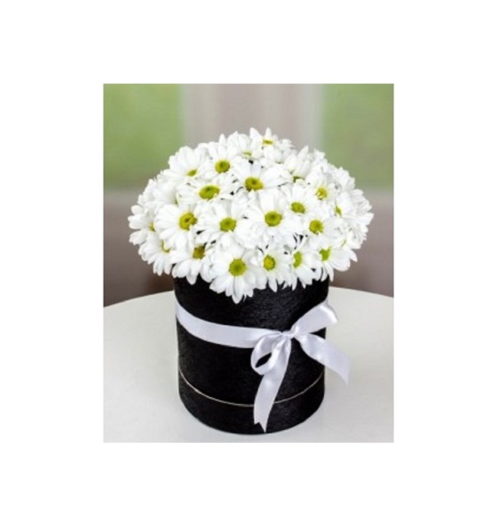 kutu boyu 15x15 ürün boyu yaklaşık 30 cm beyaz papatyalar ile hazırlanmıştır